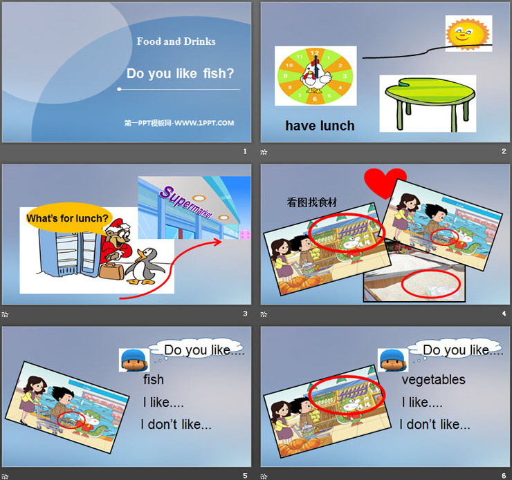 关键词:鲁科版英语三年级下册PPT课件免费下载,Do you like fish? PPT下载,Food and Drinks PPT下载,.PPT格式;