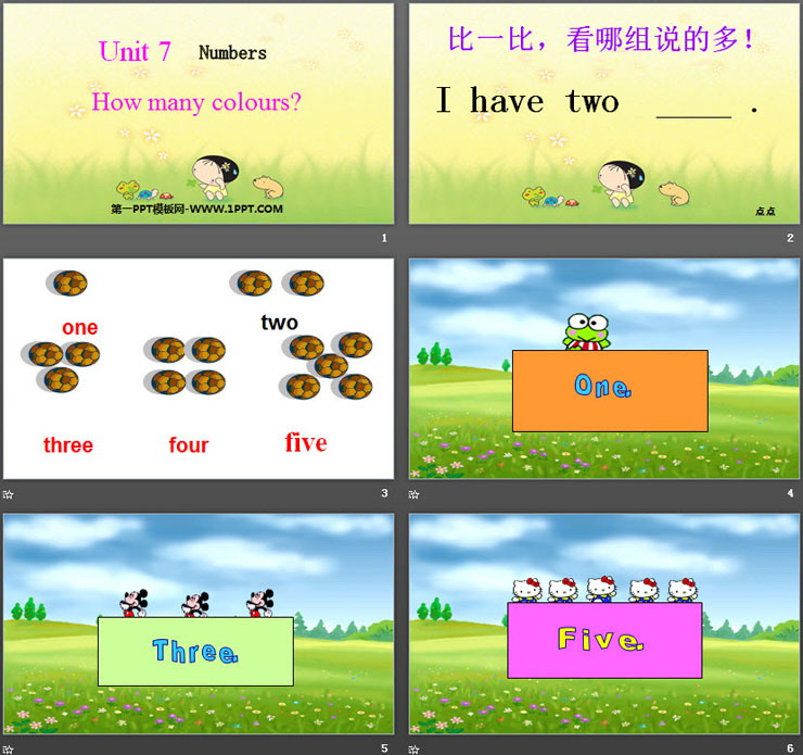 关键词:鲁科版英语三年级上册PPT课件免费下载,How Many Colours PPT下载,Numbers PPT下载,.PPT格式;