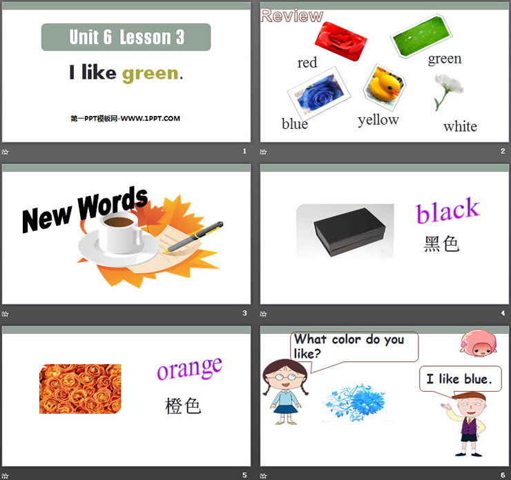 关键词:鲁科版英语三年级上册PPT课件免费下载,I like green PPT下载,Colours PPT下载,.PPT格式;