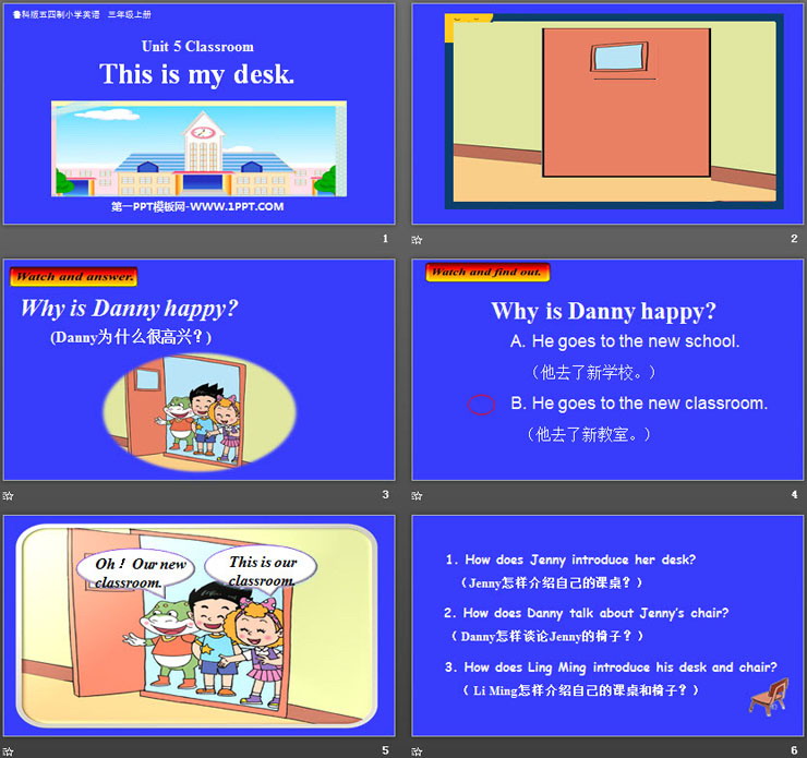 关键词:鲁科版英语三年级上册PPT课件免费下载,This is my desk PPT下载,Classroom PPT下载,.PPT格式;