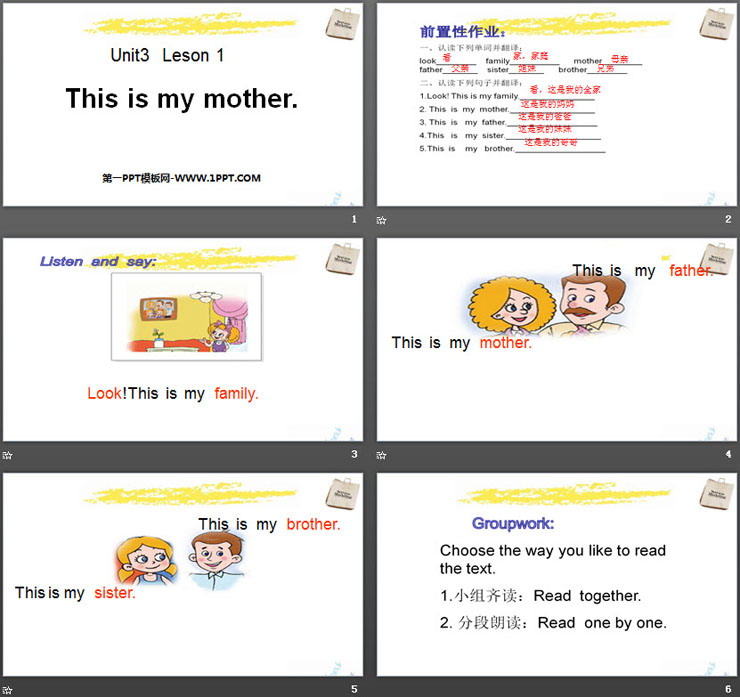关键词:鲁科版英语三年级上册PPT课件免费下载,This is my mother PPT下载,Family PPT下载,.PPT格式;