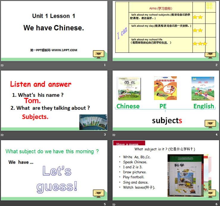 talk about my school subjects.(能谈论自己的学校课程、表达喜好。)