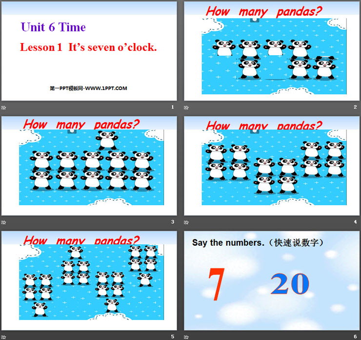 关键词:鲁科版英语三年级下册PPT课件免费下载,It's seven o'clock PPT下载,Time PPT下载,.PPT格式;
