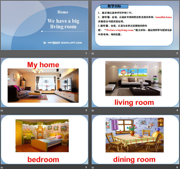 《We have a big living room》Home PPT,共16页。