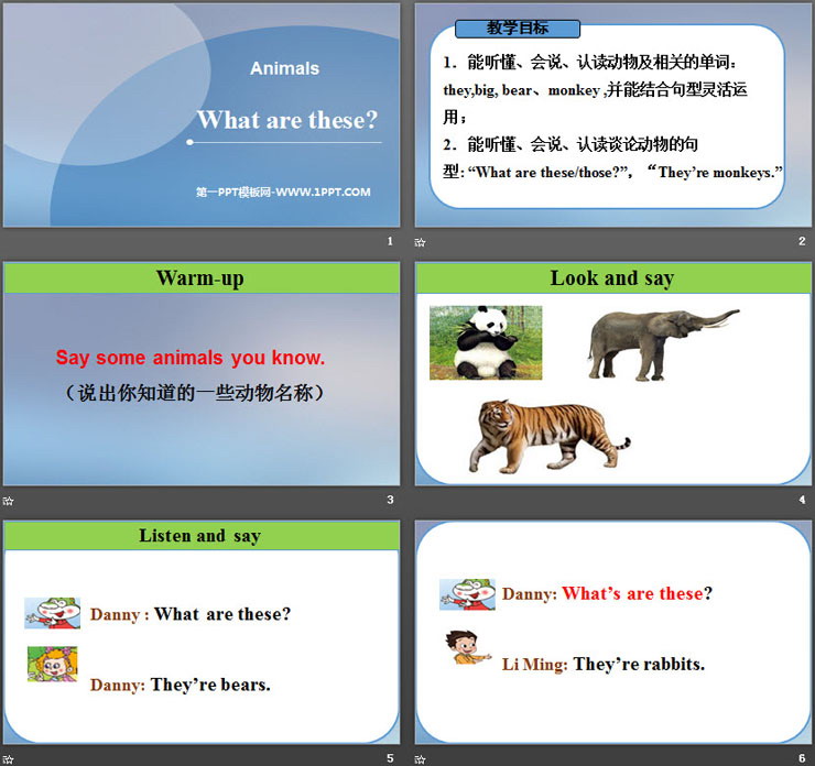 关键词:鲁科版英语三年级下册PPT课件免费下载,What are these? PPT下载,Animals PPT下载,.PPT格式;