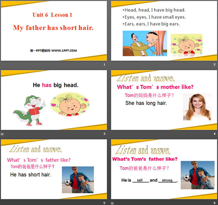 关键词:鲁科版英语四年级上册PPT课件免费下载,My father has short hair PPT下载,Family PPT下载,.PPT格式;