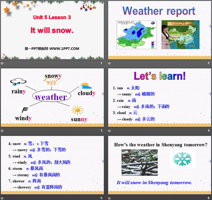 关键词:鲁科版英语四年级上册PPT课件免费下载,It will snow PPT下载,Weather PPT下载,.PPT格式;