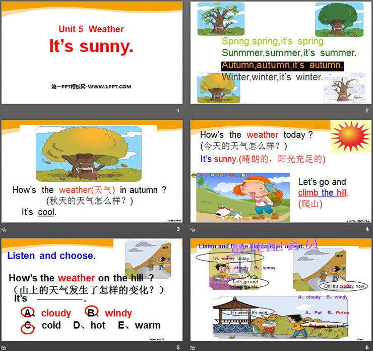 《It's sunny》Weather PPT课件,共12页。