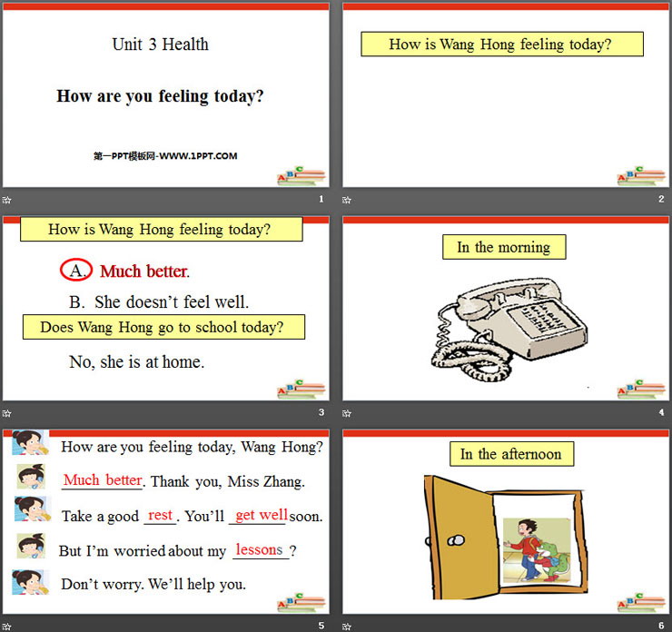 关键词:鲁科版英语五年级下册PPT课件免费下载,How are you feeling today? PPT下载,Health PPT下载,.PPT格式;