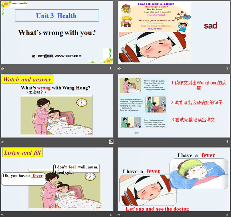 关键词:鲁科版英语五年级下册PPT课件免费下载,What's wrong with you? PPT下载,Health PPT下载,.PPT格式;