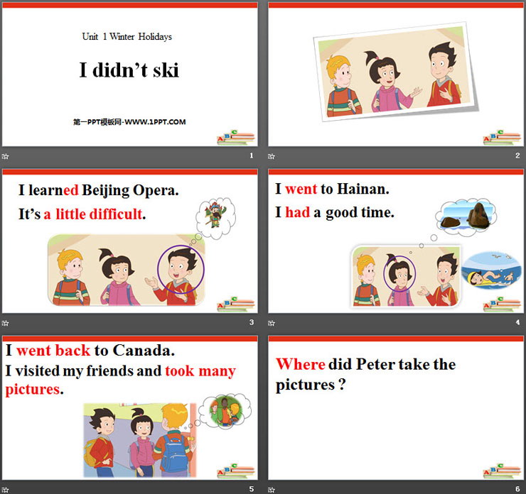关键词:鲁科版英语五年级下册PPT课件免费下载,I didn't ski PPT下载,Winter Holidays PPT下载,.PPT格式;