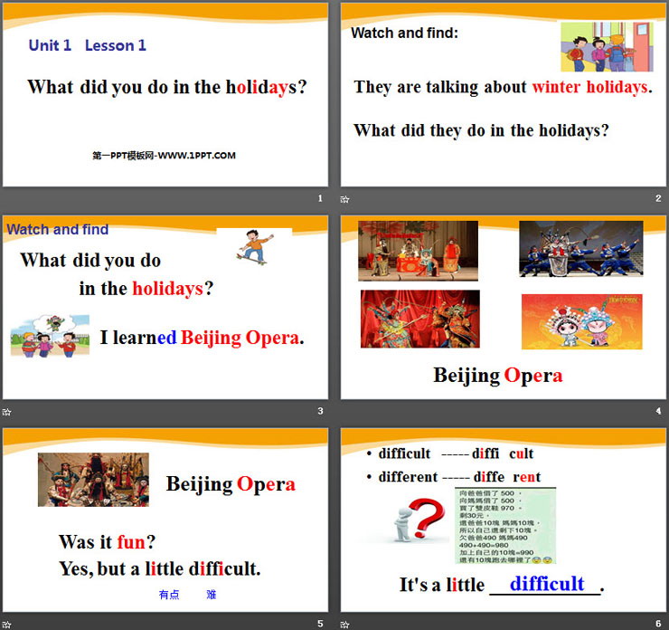 关键词:鲁科版英语五年级下册PPT课件免费下载,What did you do in the holidays? PPT下载,Winter Holidays PPT下载,.PPT格式;
