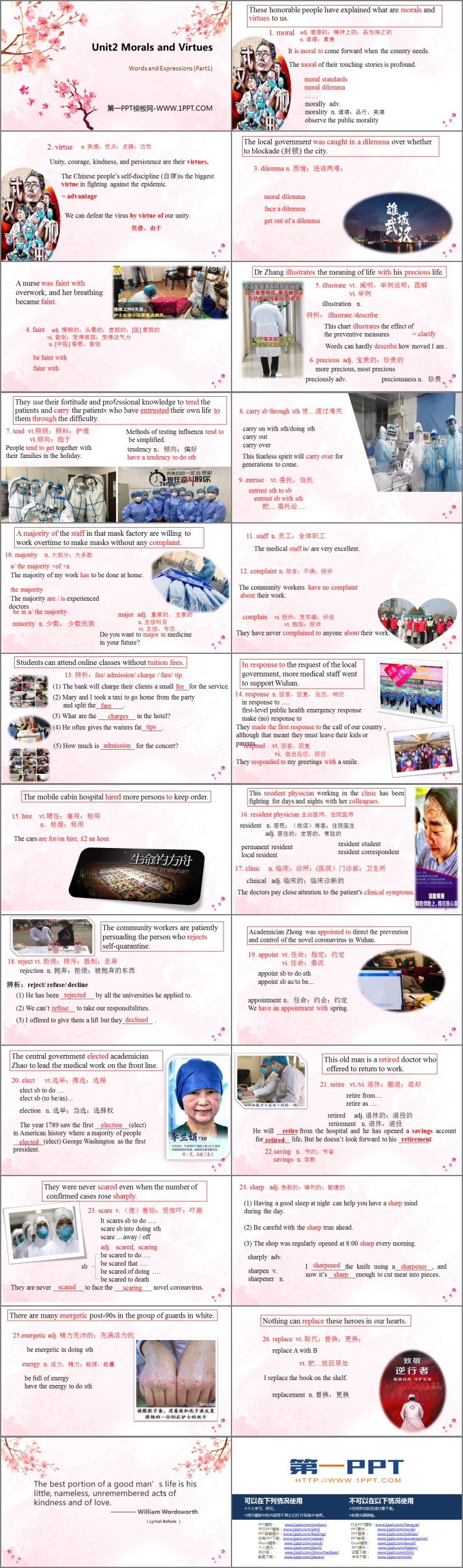 《Morals and Virtues》PPT课件包含Words and Expressions等内容。