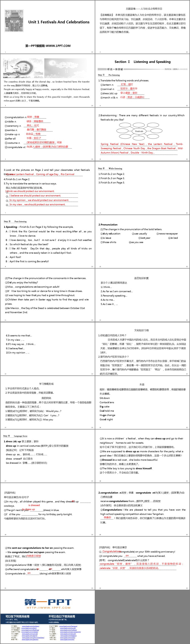 《Festivals And Celebrations》PPT课件包含听说一体突破、语言知识积累、文化知识习得等内容。