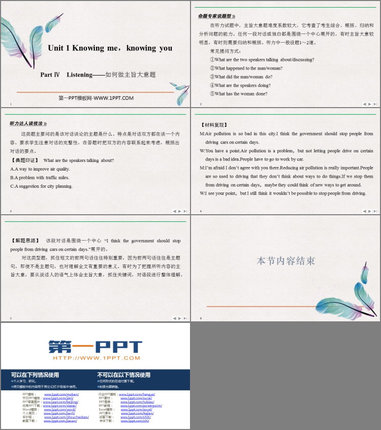 《Knowing me,knowing you》PartⅣ PPT课件包括题型解读、听力达人、解题思路等内容。