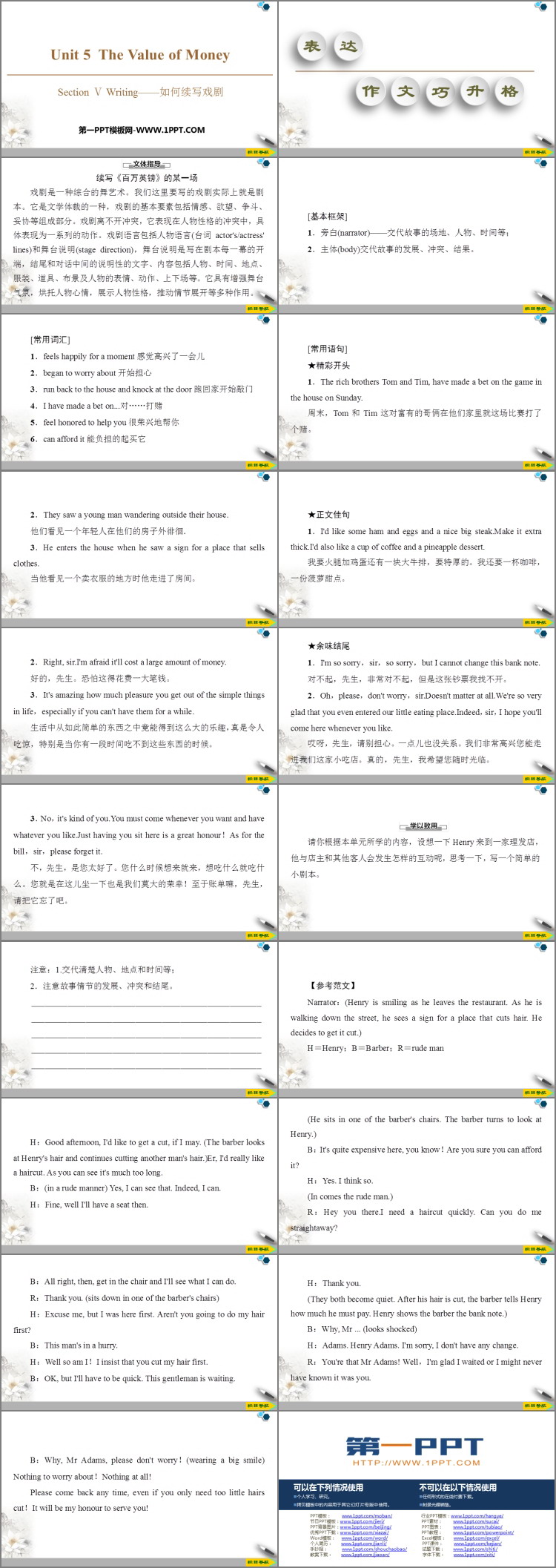 人教版高中英语必修三《The Value of Money》SectionⅤ PPT课件下载,共20页。