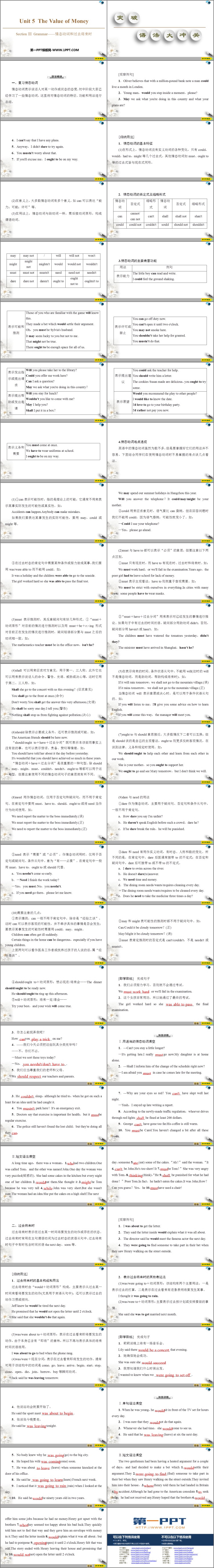 《The Value of Money》SectionⅢ PPT课件课件包含语法精讲、冲关训练等内容。