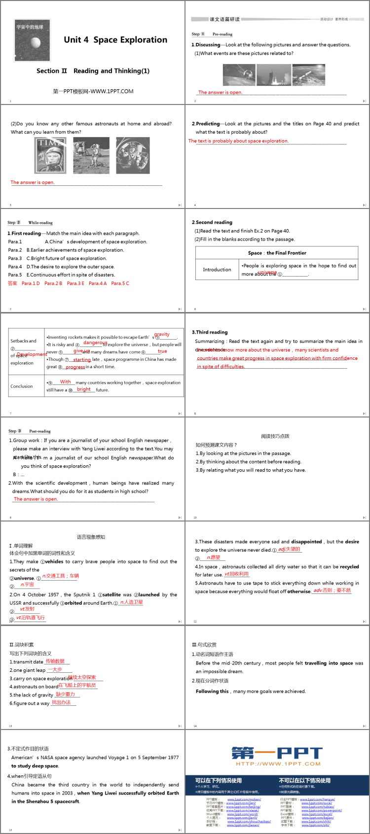 人教版高中英语必修三《Space Exploration》SectionⅡ PPT课件,共16页。