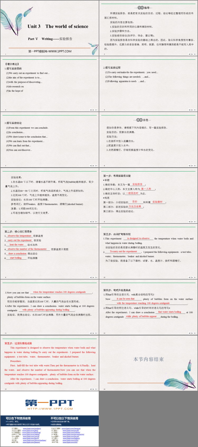 《The world of science》PartⅤ PPT课件包括写作指导、典例示范、典题印证等内容。