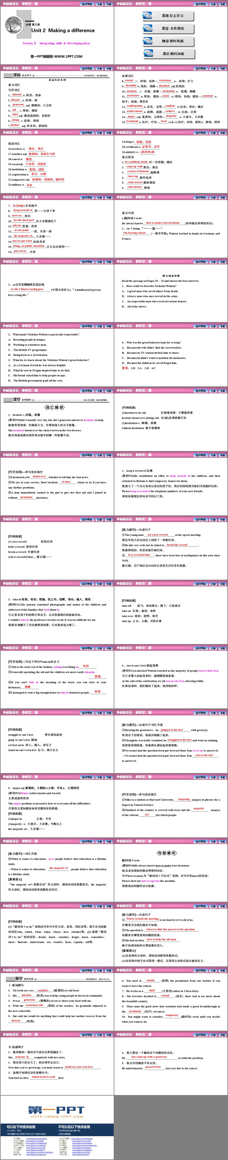 《Making a difference》SectionⅡ PPT课件包括自主学习、合作探究、即时巩固、限时训练等内容。