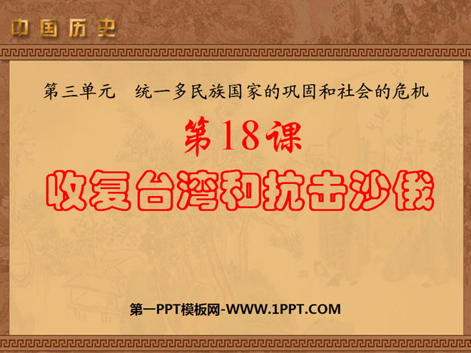 关键词:统一多民族国家的巩固和社会的危机教学课件,收复台湾和抗击沙俄教学课件,新人教版七年级下册历史PPT课件,七年级历史幻灯片课件下载,统一多民族国家的巩固和社会的危机PPT课件下载,收复台湾和抗击沙俄PPT课件下载,.ppt格式