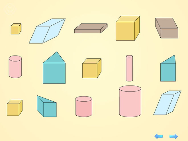本课件通过动画帮助学生认识各种图形,并将各种图形进行分类,通过小测验的方式帮助学生学习本课的内容。