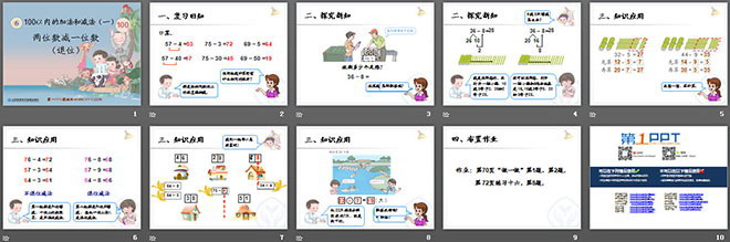 关键词:100以内的加法和减法课件,两位数减一位数、整十数课件,新人教版一年级下册数学PPT课件,一年级数学幻灯片课件下载,100以内的加法和减法PPT课件下载,两位数减一位数、整十数PPT课件下载,.ppt格式