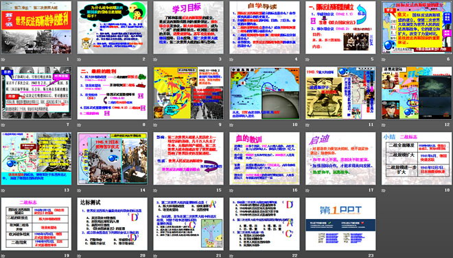 关键词:第二次世界大战教学课件,世界反法西斯战争的胜利教学课件,新人教版九年级下册历史PPT课件,九年级历史幻灯片课件下载,第二次世界大战PPT课件下载,世界反法西斯战争的胜利PPT课件下载,.ppt格式