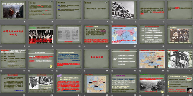 关键词:第二次世界大战教学课件,世界反法西斯战争的胜利教学课件,新人教版九年级下册历史PPT课件,九年级历史幻灯片课件下载,第二次世界大战PPT课件下载,世界反法西斯战争的胜利PPT课件下载,.ppt格式