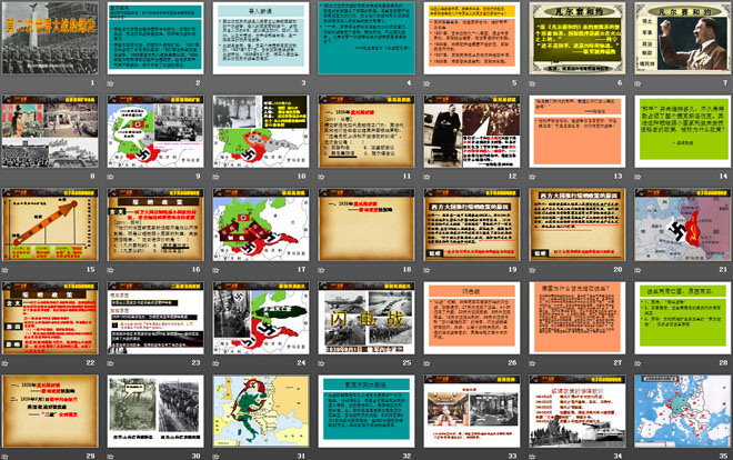 关键词:第二次世界大战教学课件,第二次世界大战的爆发教学课件,新人教版九年级下册历史PPT课件,九年级历史幻灯片课件下载,第二次世界大战PPT课件下载,第二次世界大战的爆发PPT课件下载,.ppt格式