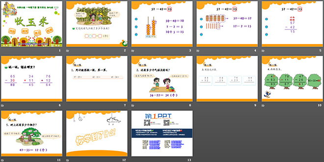 关键词:收玉米课件PPT,北师大版一年级下册数学PPT课件下载,一年级数学幻灯片课件下载,收玉米PPT课件下载,.PPT格式