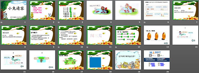 关键词:小兔请客课件PPT,北师大版一年级下册数学PPT课件下载,一年级数学幻灯片课件下载,小兔请客PPT课件下载,.PPT格式