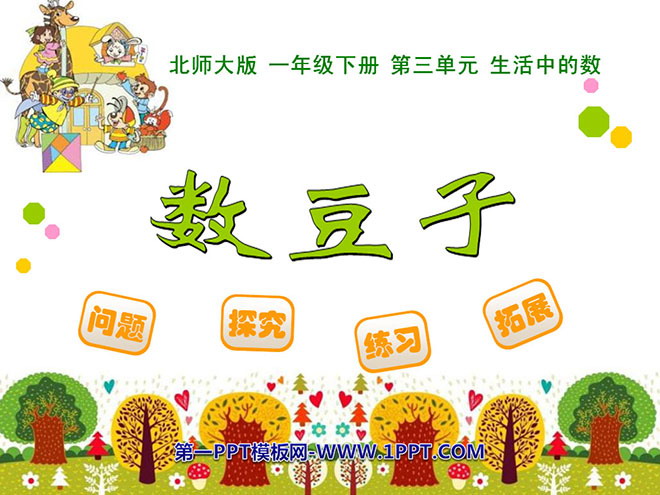 关键词:数豆子课件PPT,北师大版一年级下册数学PPT课件下载,一年级数学幻灯片课件下载,数豆子PPT课件下载,.PPT格式