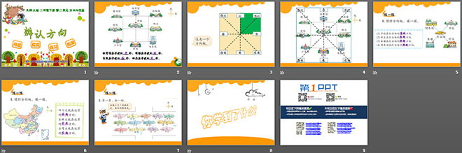 关键词:辨认方向课件PPT,北师大版二年级下册数学PPT课件下载,二年级数学幻灯片课件下载,辨认方向PPT课件下载,.PPT格式