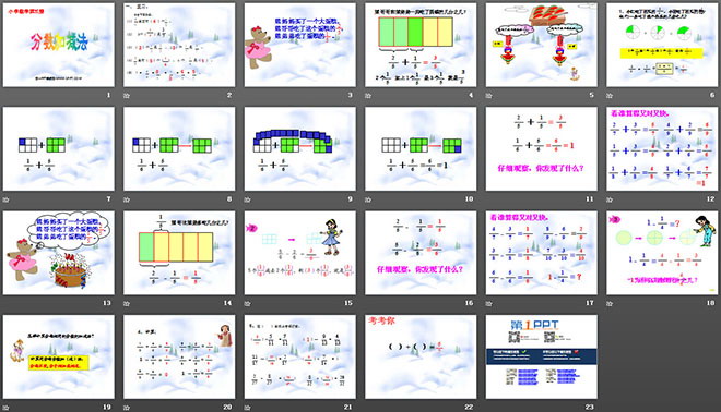 关键词:分数加减课件PPT,北师大版五年级下册数学PPT课件下载,五年级数学幻灯片课件下载,分数加减PPT课件下载,.PPT格式