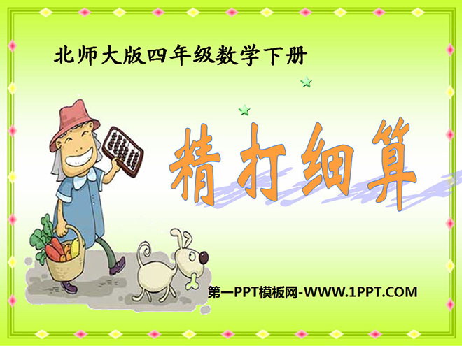 关键词:精打细算课件PPT,北师大版四年级下册数学PPT课件下载,四年级数学幻灯片课件下载,精打细算PPT课件下载,.PPT格式