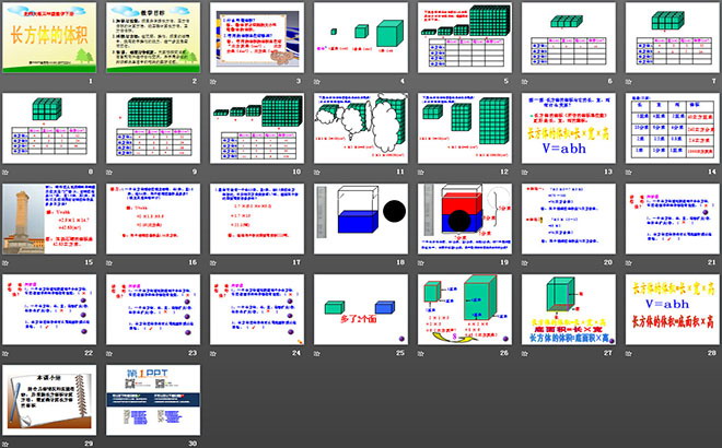 关键词:长方体的体积课件PPT,北师大版五年级下册数学PPT课件下载,五年级数学幻灯片课件下载,长方体的体积PPT课件下载,.PPT格式