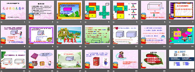 关键词:长方体的表面积课件PPT,北师大版五年级下册数学PPT课件下载,五年级数学幻灯片课件下载,长方体的表面积PPT课件下载,.PPT格式