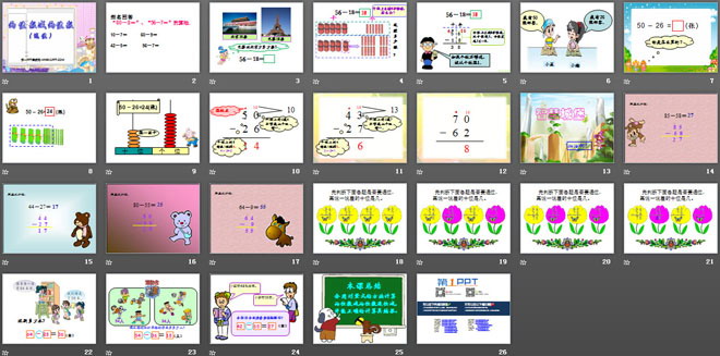 关键词:100以内的加法和减法课件PPT,两位数减两位数课件PPT,苏教版一年级下册数学PPT课件下载,一年级数学幻灯片课件下载,100以内的加法和减法PPT课件下载,两位数减两位数PPT课件下载,.PPT格式