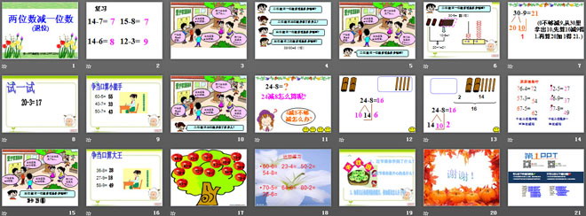 关键词:100以内的加法和减法课件PPT,两位数减一位数课件PPT,苏教版一年级下册数学PPT课件下载,一年级数学幻灯片课件下载,100以内的加法和减法PPT课件下载,两位数减一位数PPT课件下载,.PPT格式
