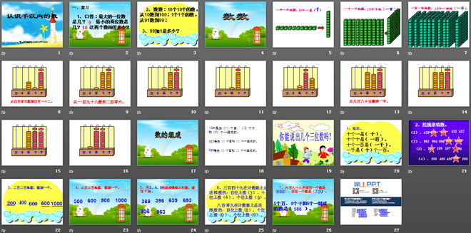 关键词:认识万以内的数课件PPT,认识千以内的数课件PPT,苏教版二年级下册数学PPT课件下载,二年级数学幻灯片课件下载,认识万以内的数PPT课件下载,认识千以内的数PPT课件下载,.PPT格式