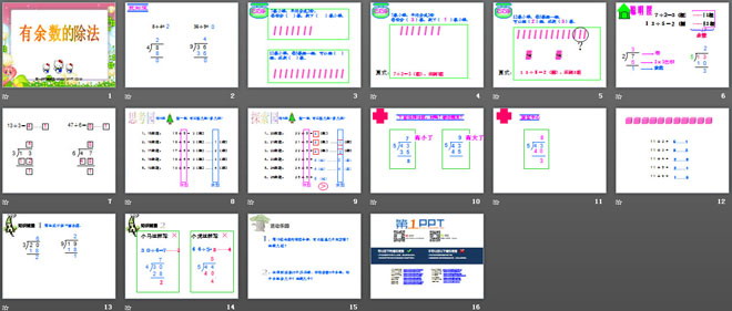 关键词:有余数的除法课件PPT,苏教版二年级下册数学PPT课件下载,二年级数学幻灯片课件下载,有余数的除法PPT课件下载,.PPT格式