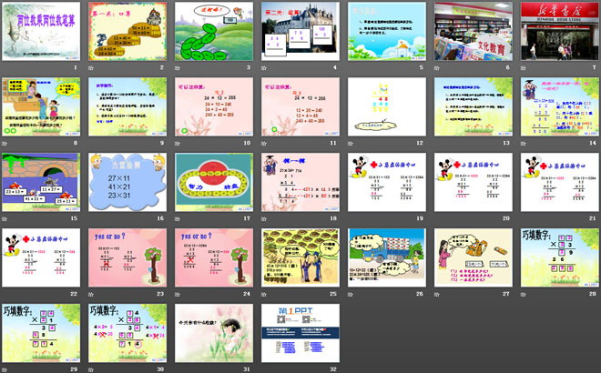 关键词:两位数乘两位数课件PPT,两位数乘两位数的笔算课件PPT,苏教版三年级下册数学PPT课件下载,三年级数学幻灯片课件下载,两位数乘两位数PPT课件下载,两位数乘两位数的笔算PPT课件下载,.PPT格式