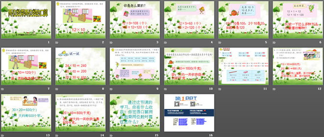 关键词:两位数乘两位数课件PPT,两位数乘两位数的口算课件PPT,苏教版三年级下册数学PPT课件下载,三年级数学幻灯片课件下载,两位数乘两位数PPT课件下载,两位数乘两位数的口算PPT课件下载,.PPT格式