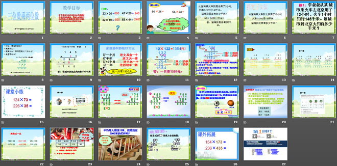 关键词:三位数乘两位数课件PPT,三位数乘两位数笔算乘法课件PPT,苏教版四年级下册数学PPT课件下载,四年级数学幻灯片课件下载,三位数乘两位数PPT课件下载,三位数乘两位数笔算乘法PPT课件下载,.PPT格式