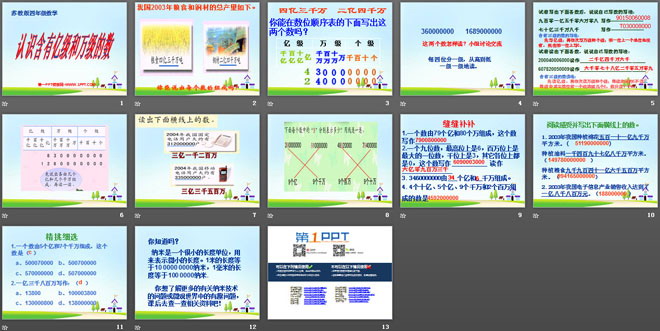 关键词:认识多位数课件PPT,认识含有亿级和万级的数课件PPT,苏教版四年级下册数学PPT课件下载,四年级数学幻灯片课件下载,认识多位数PPT课件下载,认识含有亿级和万级的数PPT课件下载,.PPT格式