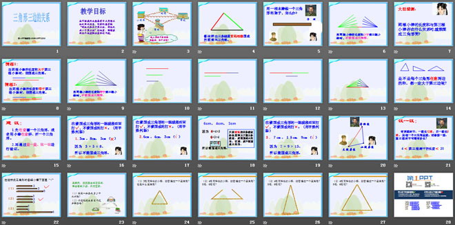 关键词:三角形平行四边形和梯形课件PPT,三角形三边的关系课件PPT,苏教版四年级下册数学PPT课件下载,四年级数学幻灯片课件下载,三角形平行四边形和梯形PPT课件下载,三角形三边的关系PPT课件下载,.PPT格式