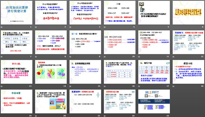 关键词:运算律课件PPT,应用加法运算律进行简便计算课件PPT,苏教版四年级下册数学PPT课件下载,四年级数学幻灯片课件下载,运算律PPT课件下载,应用加法运算律进行简便计算PPT课件下载,.PPT格式