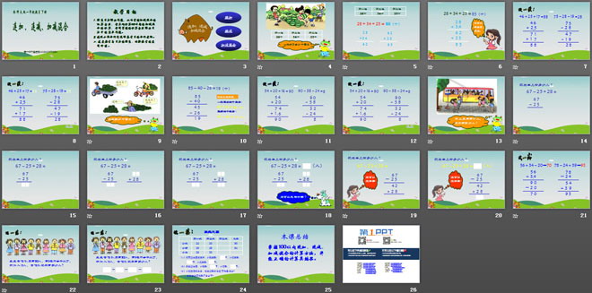 关键词:100以内的加法和减法课件PPT,连加连减加减混合课件PPT,西师大版一年级下册数学PPT课件下载,一年级数学幻灯片课件下载,100以内的加法和减法PPT课件下载,连加连减加减混合PPT课件下载,.PPT格式