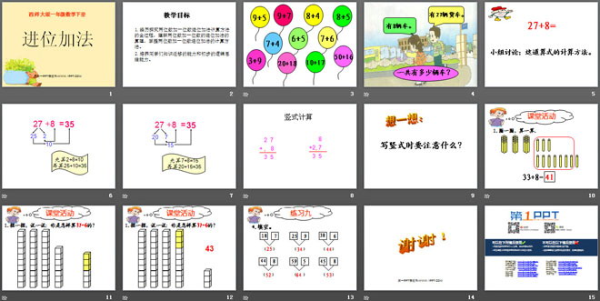 关键词:100以内的加法和减法课件PPT,进位加法课件PPT,西师大版一年级下册数学PPT课件下载,一年级数学幻灯片课件下载,100以内的加法和减法PPT课件下载,进位加法PPT课件下载,.PPT格式